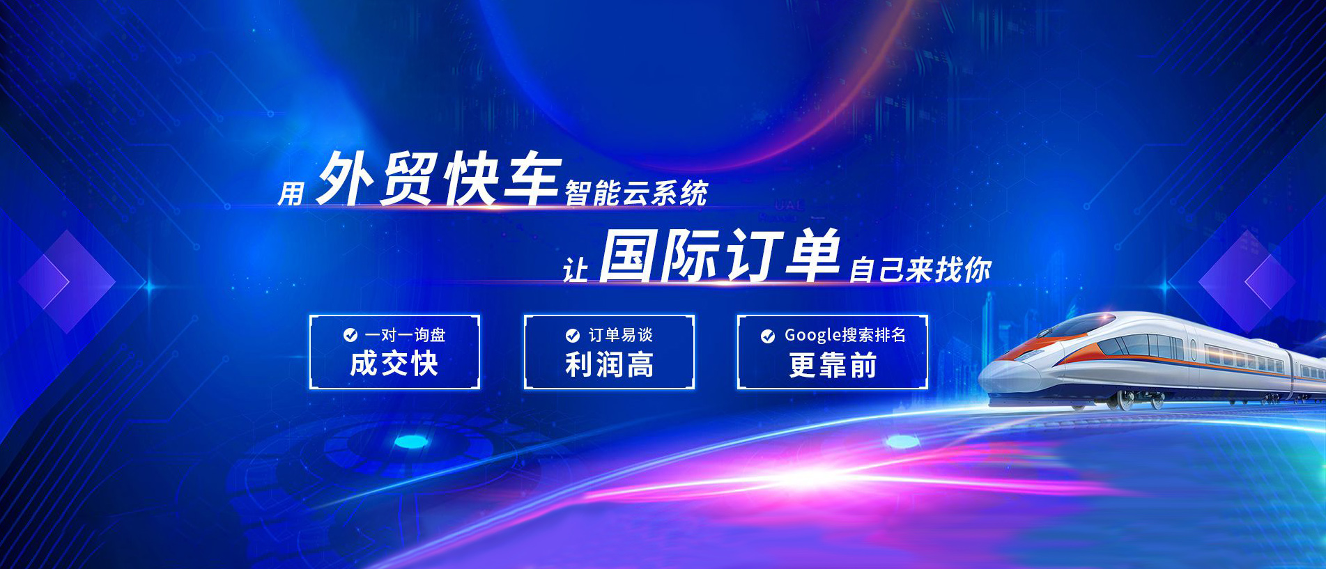 外貿(mào)快車是基于大數(shù)據(jù)和云計(jì)算的智能網(wǎng)絡(luò)營銷系統(tǒng)平臺(tái)。 依托五大功能系統(tǒng),幫助外貿(mào)企業(yè)智能創(chuàng)建多語種營銷型網(wǎng)站和先進(jìn)的VR展示網(wǎng)站,通過采購商數(shù)據(jù)挖掘,以及搜索引擎營銷、SNS等多渠道網(wǎng)絡(luò)營銷,實(shí)現(xiàn)全球推廣和新興市場(chǎng)開發(fā)。